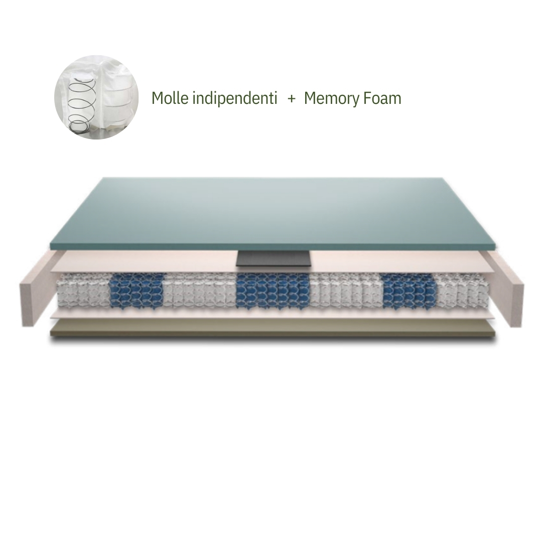 Il comodissimo materasso in PROMO 2026, 800 molle indipendenti e uno strato di 4 cm di Memory Foam. Il rivestimento sfoderabile, massaggiante al tatto grazie all’imbottitura è la soluzione ideale per chi cerca un comfort superiore e un sostegno ottimale durante il sonno. Combinando la tecnologia tra molle indipendenti e Memory Foam, questo materasso è progettato per adattarsi perfettamente al corpo, migliorando la qualità del riposo e offrendo un supporto ergonomico senza pari.