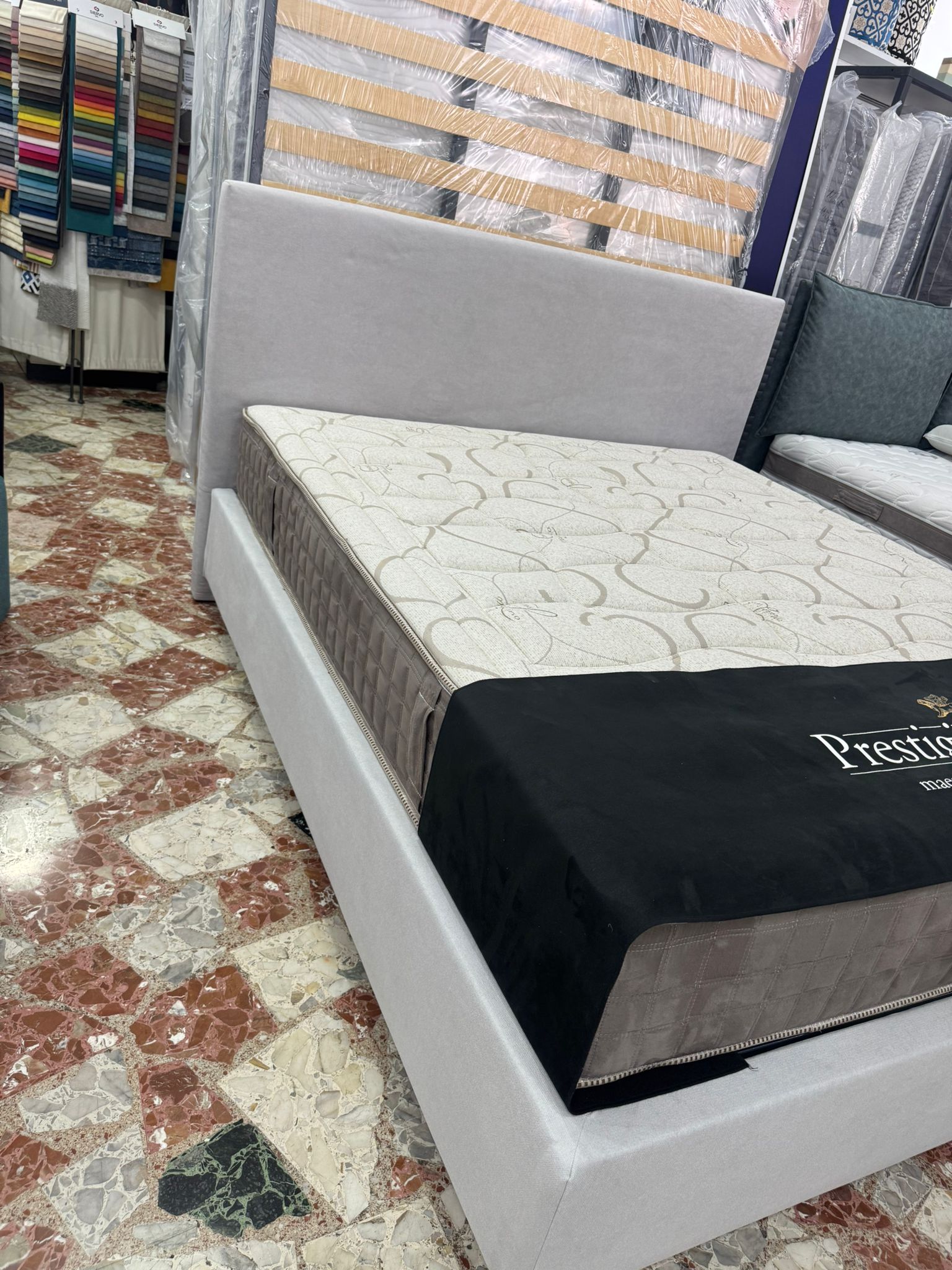 Il letto è completamente personalizzabile, dalla scelta dei piedini, ai tessuti e colori.