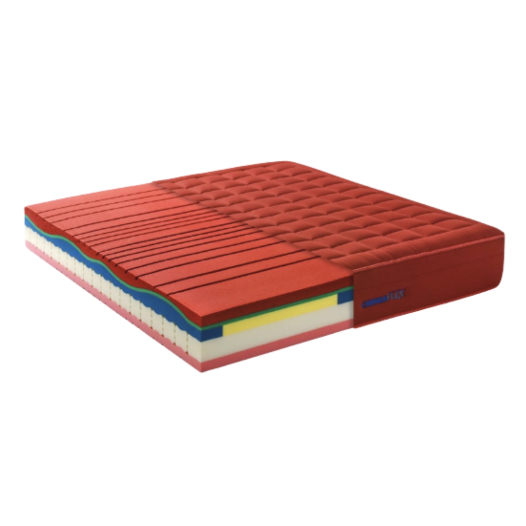 - 5 strati di Memory e Poliflex: 1. Memory Ginseng, 2. Poliflex 3. Poliflex con due inserti centrali 4. Poliflex effetto molle 5. Poliflex