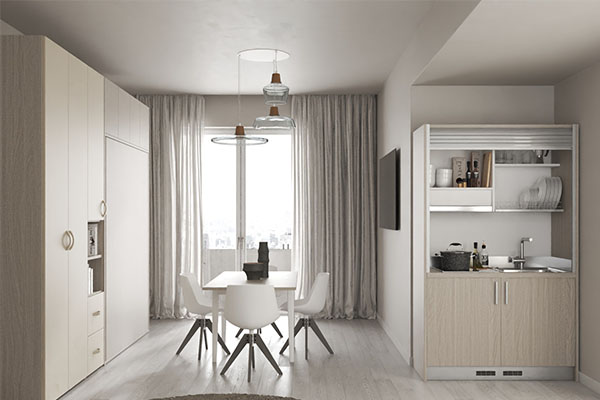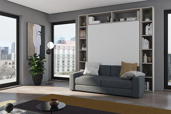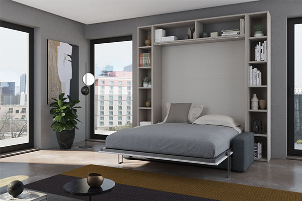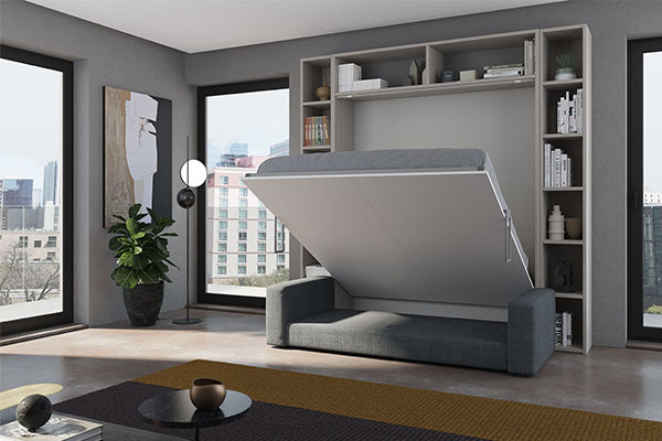 Il sistema Space è capace di molteplici soluzioni nel risolvere i problemi di spazio della zona notte, living e home-office per rispondere alle necessità della casa d’oggi. Soluzioni versatili con letti a scomparsa, adatte a stanze grandi e piccole, propongono idee d’arredo in grado di accontentare ogni gusto. Moduli, con o senza divano, trasformabili in letto singolo, a una piazza e mezzo, matrimoniale e a castello.