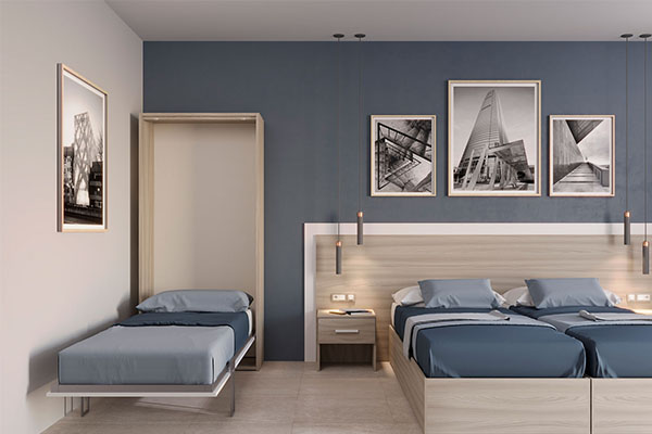 Semplici gesti e in pochi secondi il letto trasformabile verticale viene aperto o chiuso. Il meccanismo ammortizzato, certificato e garantito, prodotto in Italia, è estremamente facile e sicuro e permette una movimentazione rallentata in assoluta sicurezza.